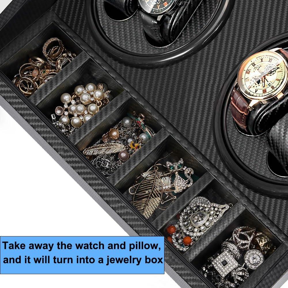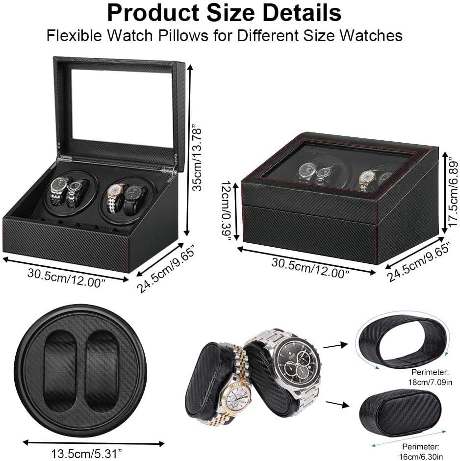 【6+6 Watch Winder】This 6-watch winder can simultaneously wind 6 watches and store 6 additional watches(12 watches in total). The watch winder box includes two styles of watch pillows to fit different-sized watches.The winding compartments feature memory foam pillows, while the storage slots use adjustable pillows.